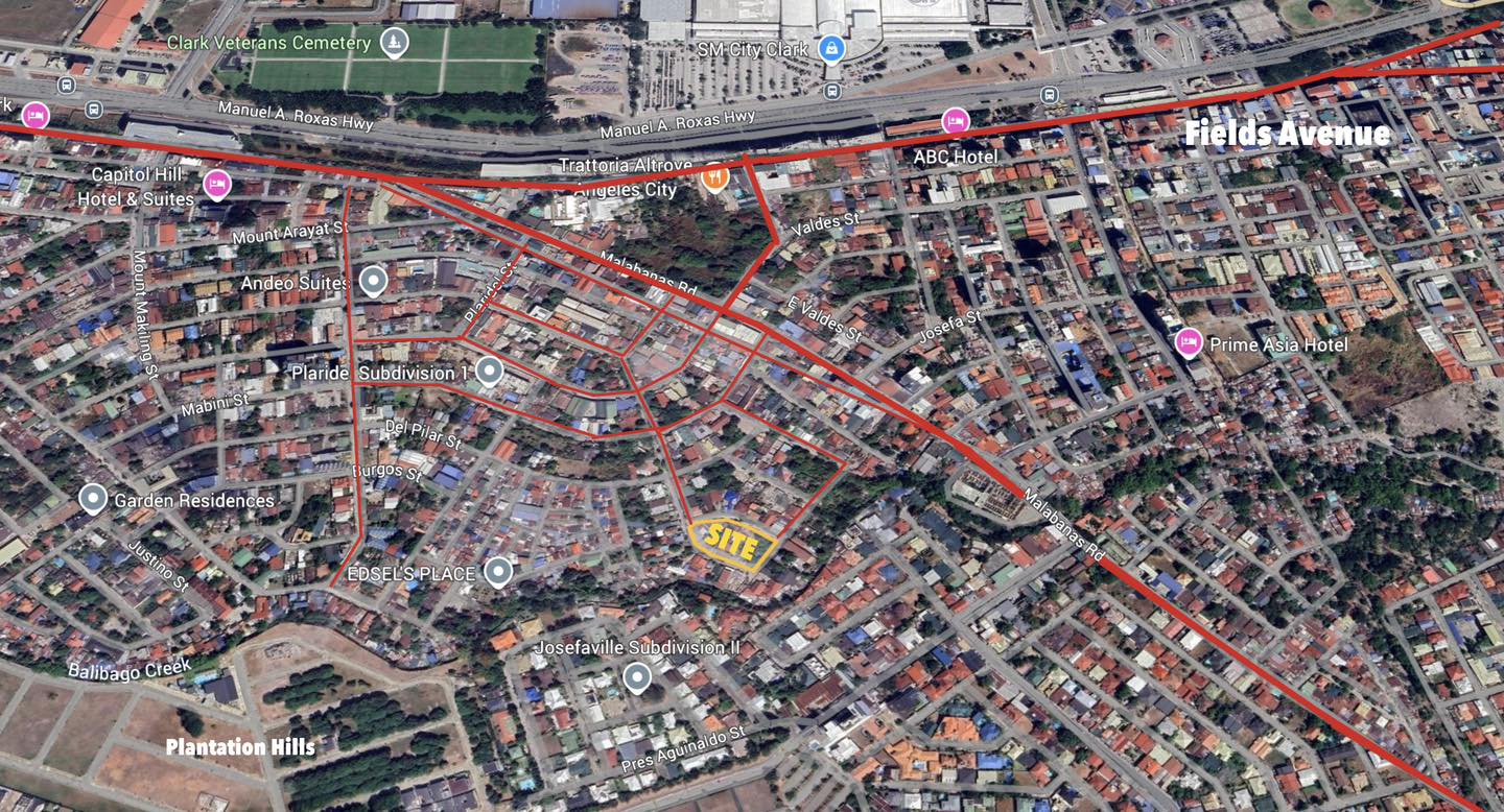 -1.5km from SM Clark and Clark Main Gate or Fields Avenue or Walking St.